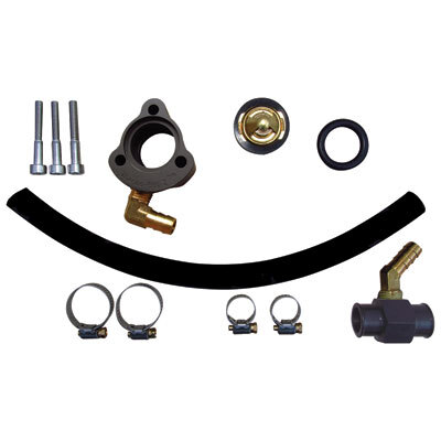 • Kit includes: external thermostat, thermostat housing, bypass hose & fitting, and clamps.
