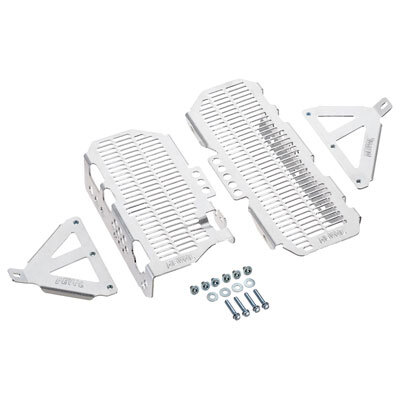The DeVol Radiator Guards focus on giving full front and side coverage to your radiators, providing excellent impact protection that won’t mess with your bike’s cooling. DeVol makes their guards from lightweight aluminum to absorb large amounts damage without adding excess weight or additional size. Meaning the riding characteristics of your bike won’t change and you won’t have to alter your riding positioning. Other guards mount directly to the radiators themselves, but DeVol has designed their Guards to mount to the frame, encapsulating the radiators and directing energy around them instead of through them. This wrap-around design not only better protects your rads, but means you don’t have to take them off to install the guards.When you want extra protection for your radiators, keep things simples. Get DeVol’s Radiator Guards and ride knowing your radiators are in good hands.